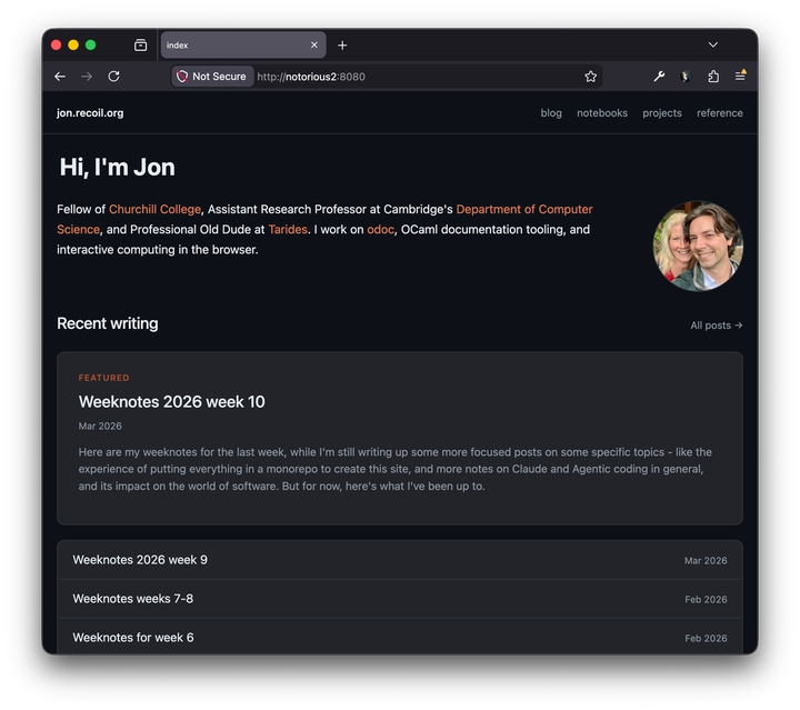 Here are my weeknotes for the last week, while I'm still writing up some more focused posts on some specific topics - like the experience of putting everything in a monorepo to create this site, and more notes on Claude and Agentic coding in general, and its impact on the world of software. But for now, here's what I've been up to.